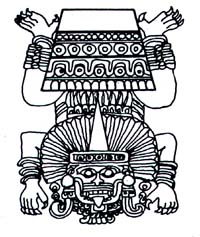Representations of squat-walled tetraons also involve possible coincidences of form, especially the short tetragonal skirts or kilts worn by various deities. Such apparel, when worn by deities with known fertility or warrior roles, may constitute something of a "star" context. The most demonstrable cases, however, are those in which the tetragonal forms are massive "blocks" set betwixt outspread legs, the narrow end facing the feet and wide end facing the waist. Two such depictions, almost as close in context as distant in location, provide us with powerful evidence regarding the transmission of Venus formula symbols from the oid World to the New World. The first depiction is a "shameless goddess" from a cave at Siddan Kotte in Northern Karnatak, Mysore, India. The second is a "diving god" from the stone of Tepetzintla at Tuxpan, Veracruz, Central America: